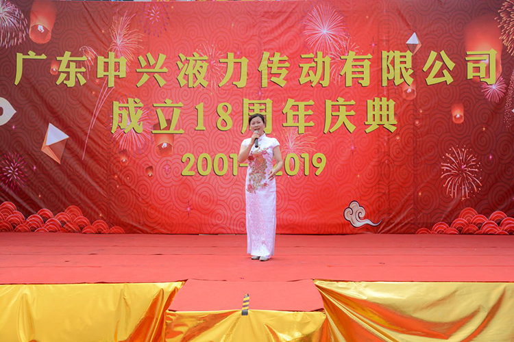 下午15:08時,主持人宣布慶典活動開始,奏唱國歌、鳴放禮炮,伴隨著熱烈的掌聲,總經理黃慶莉女士上臺致辭。她表示:中興公司從國有企業、中德合資到體制改革,砥礪前行六十年,現已成為國內最大的液力偶合器專業廠家,在國際上享有較好的知名度。2001年成功轉制為民營企業后,通過抓技改,大投入,大產出,公司生產經營獲得高速發展。